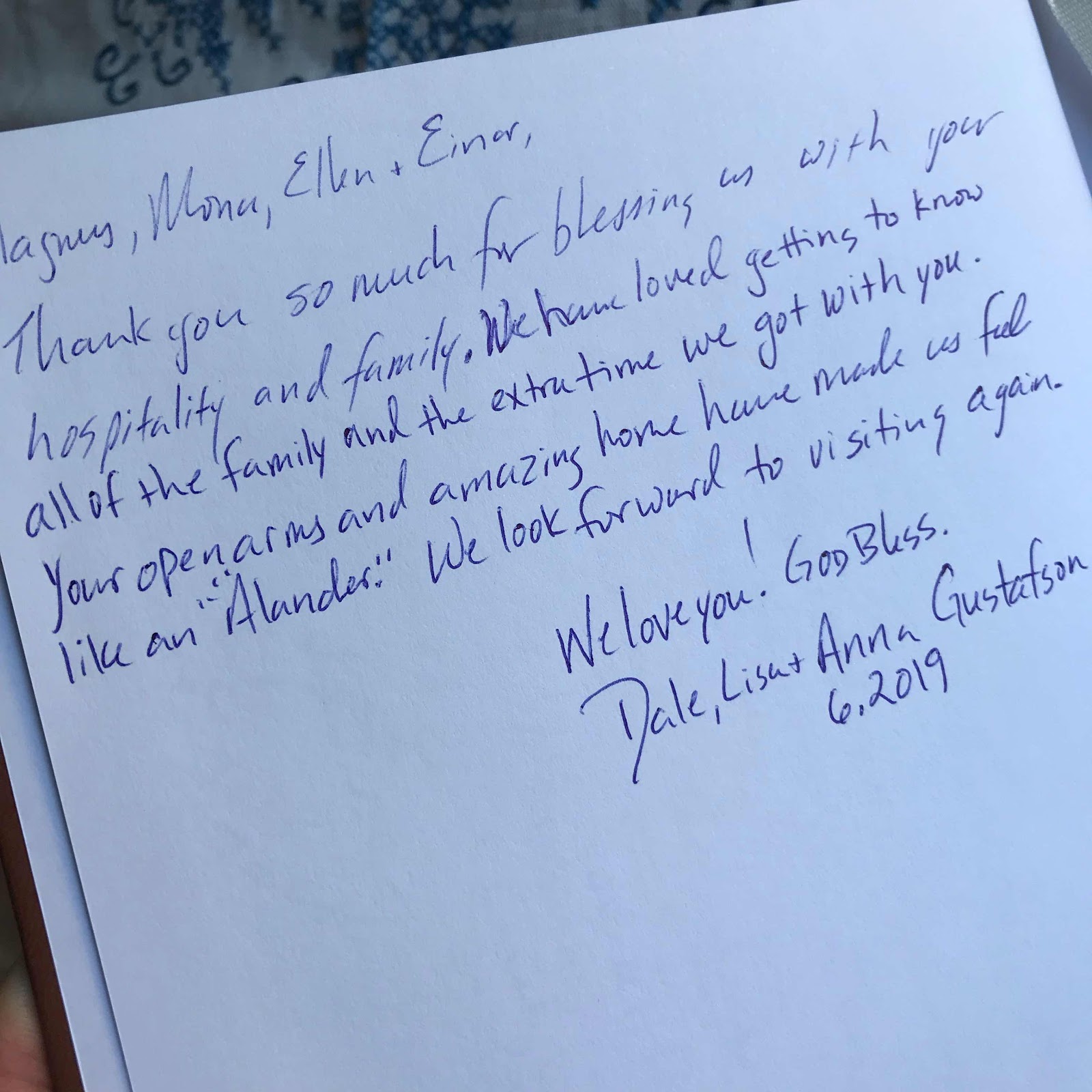 Dale och jag sa när vi skiljdes åt vid färjan, nästan i mun på varann,”it’s so easy”. Det är så lätt. Så lätt att känna släktskapen, gemenskapen, vänskapen. Den liksom bara är där, från första handskakningen, som att det inte är första gången vi ses. Vi pratar rötter, visar platser, bläddrar i gamla bilder. Och turistar, tittar på nytt, pratar om framtid nutid alltmöjligt. Hans bror Brian var också med, deras fruar, en dotter.