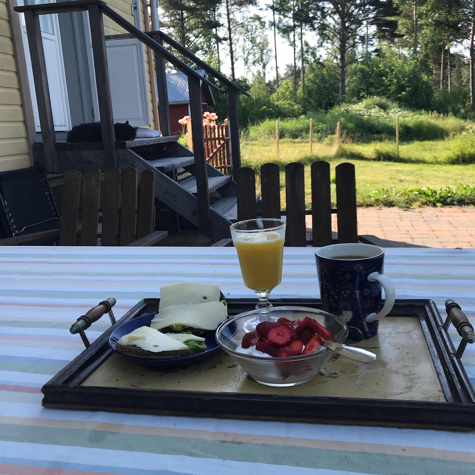 När det är skönast att äta frukost i skuggan, då vet man att det är varmt.