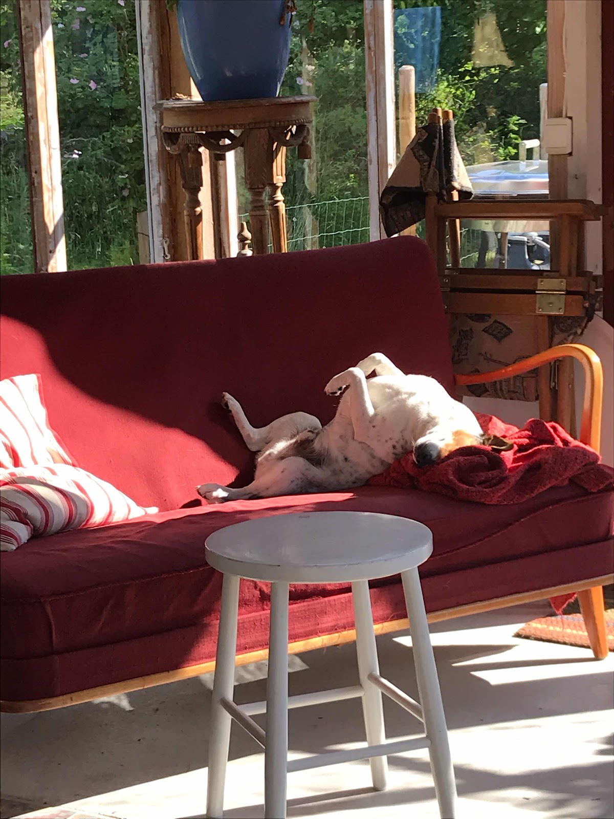 Till kvällen kom nån slags front som (äntligen!) verkar ta udden av värmeböljan. Tog på en tröja och njööt av känslan. Imorrn ska det åska och regna, så då kan vi klaga på det i stället.