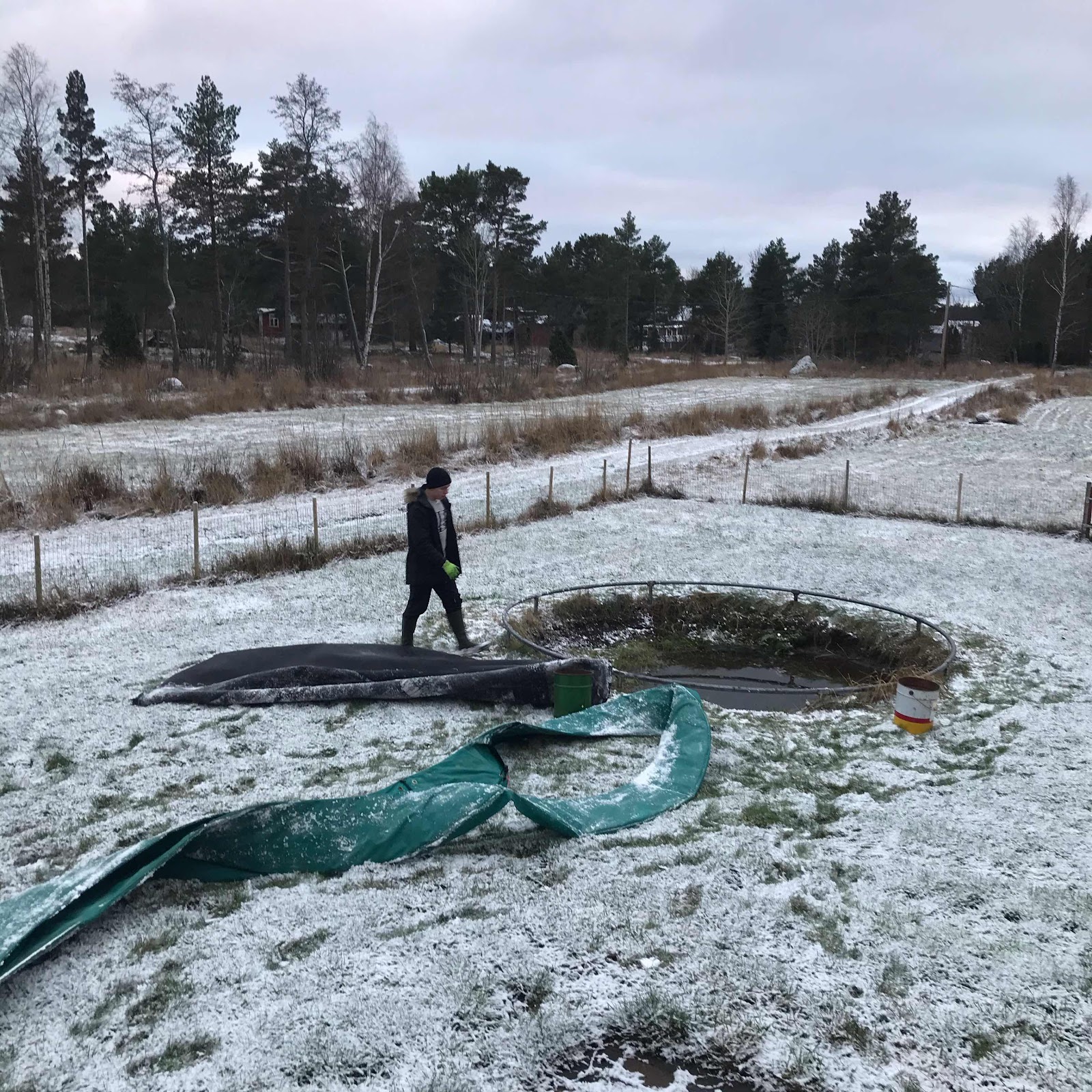 Studsmatta in i förrådet, check. Varpå jag faktiskt satte in en annons under Studsmatta Säljes, vi enades redan i somras om att det är dags nu. Eventuellt inte jättemånga som är köpsugna just precis de första snöiga dagarna i januari, men ändå.