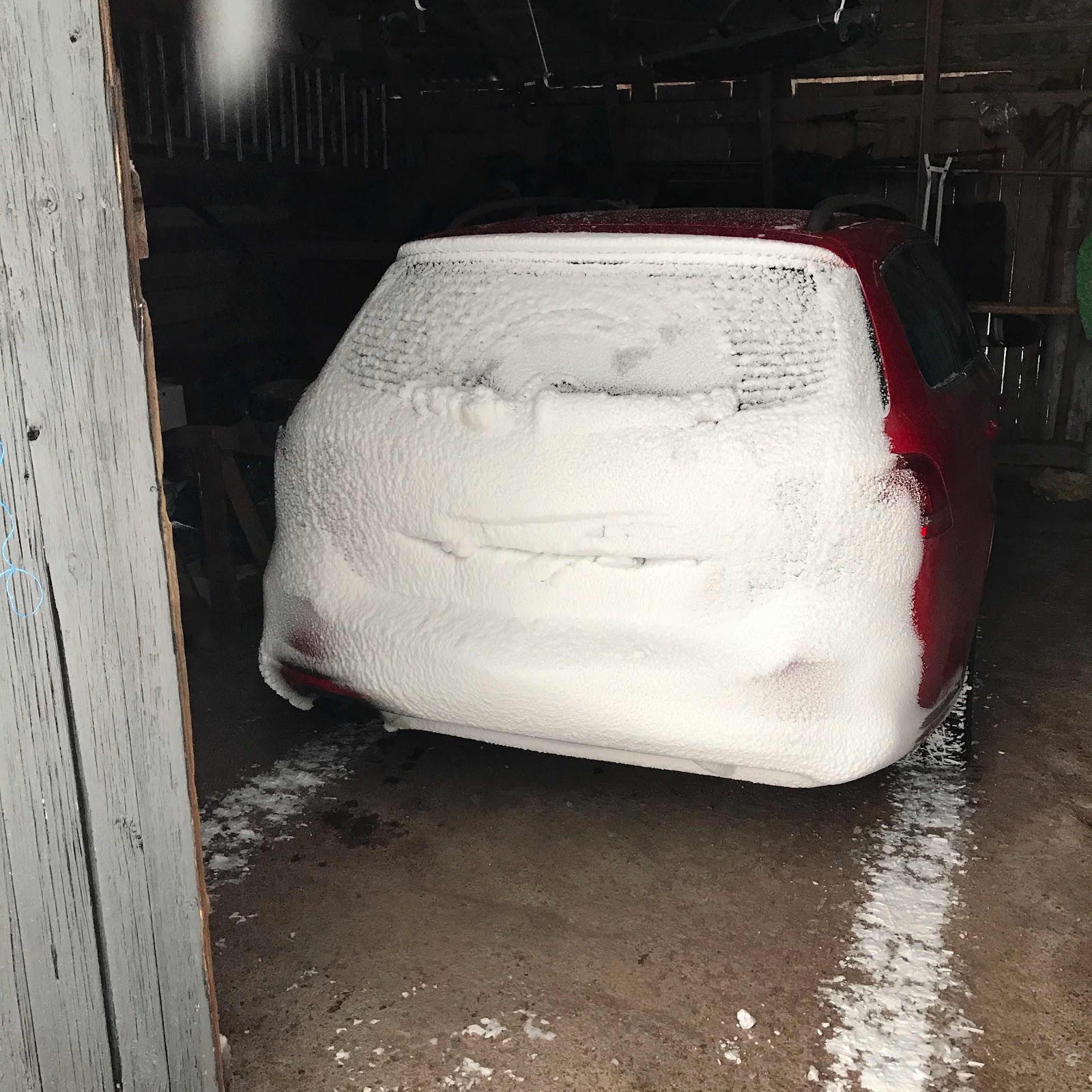 Hade nästan glömt hur riktig snövinter ser ut. Det är väldigt vackert. Utom just på bakrutan.