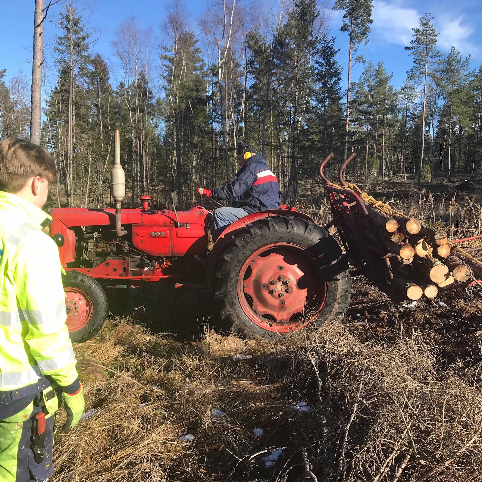 Hade bett Morfarn om hjälp att hämta hem några vindfällen från skogsskiftet. Med baktanken att lyceisten ska ha vedhuggning att ta till när rastlösheten blir för stor. Vi gissar alla att distansundervisningen kommer att pågå åtminstone hemma mars, så nu får vi vara lite påhittiga här.