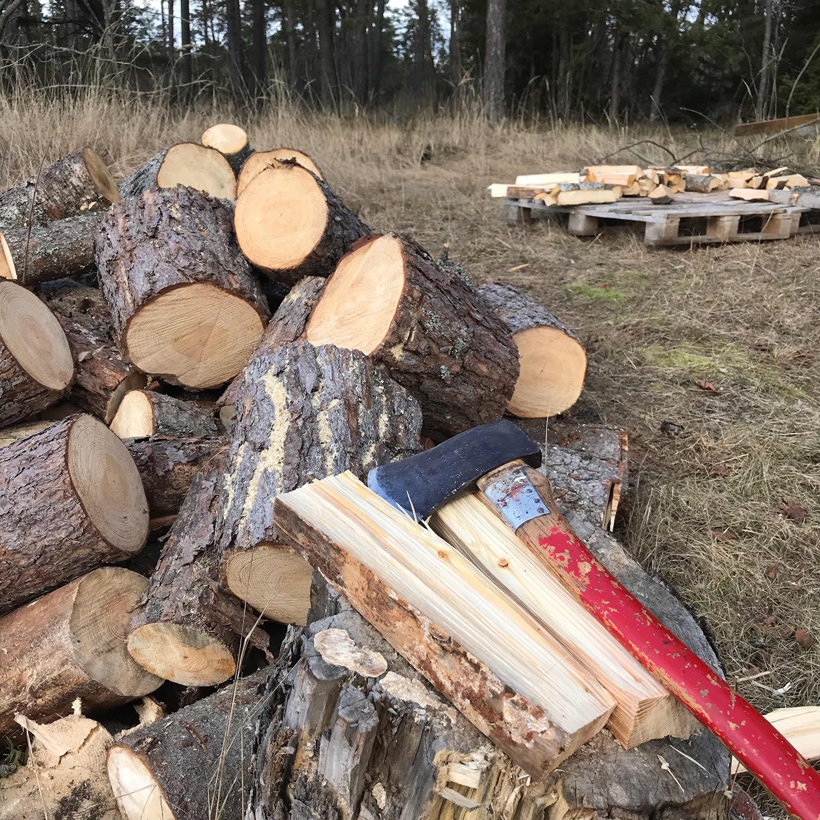 Har förresten också idkat nån slags girlpower idag. Herregud vad kul det är att hugga ved? På riktigt, jag skulle bara prova lite, och slutade först när bitarna Lillebror grovklyvt tog slut.
