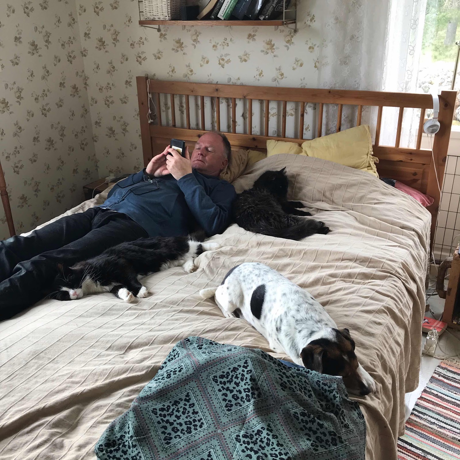 Hade tänkt lägga mig på sängen en stund. Får visst tänka om.