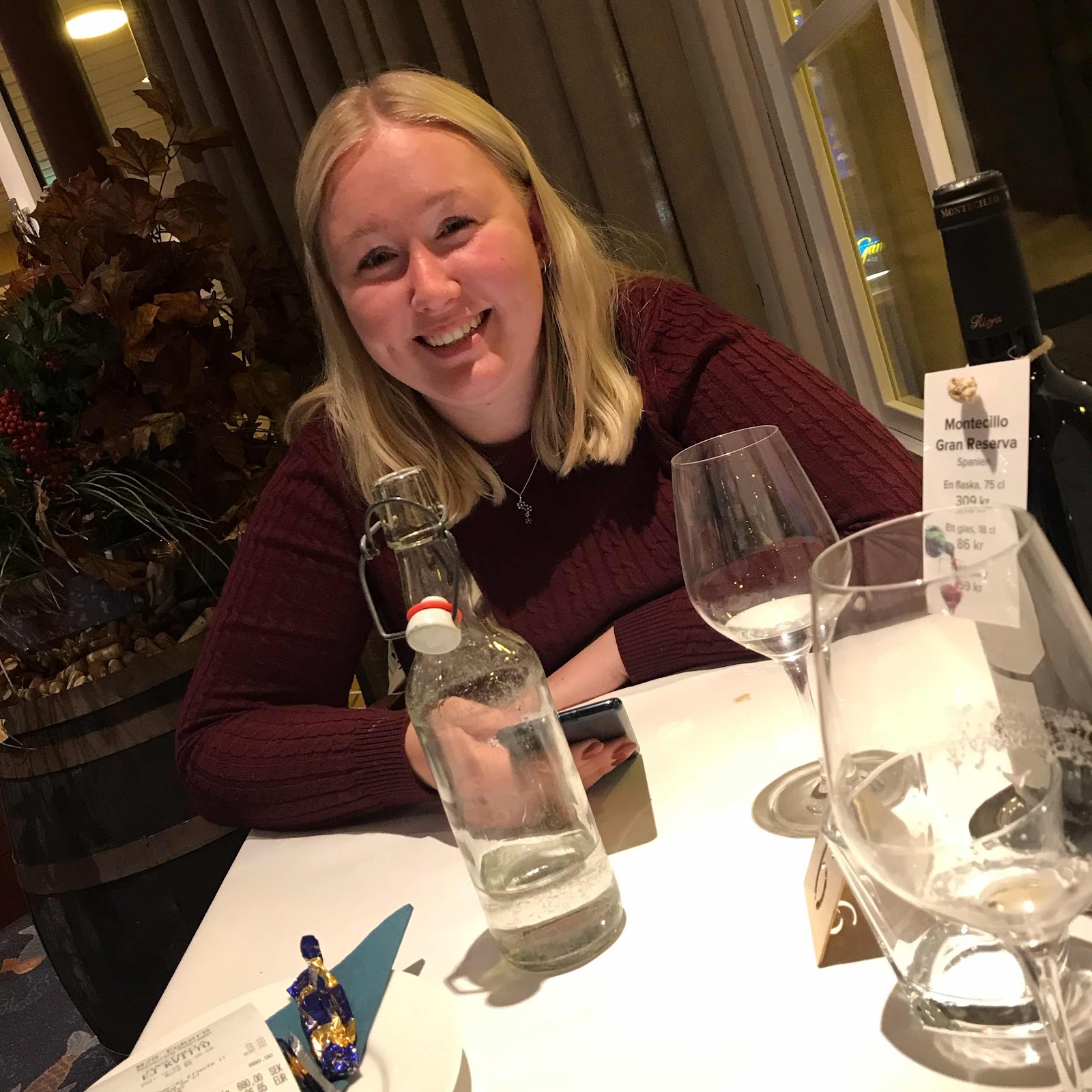A la carte-middag med den här stjärnan ombord på m/s Eckerö på väg hem. Vi hann jättebra med färjan, har nog aldrig sett så lite trafik genom Stockholm en fredag kväll. Skönt.