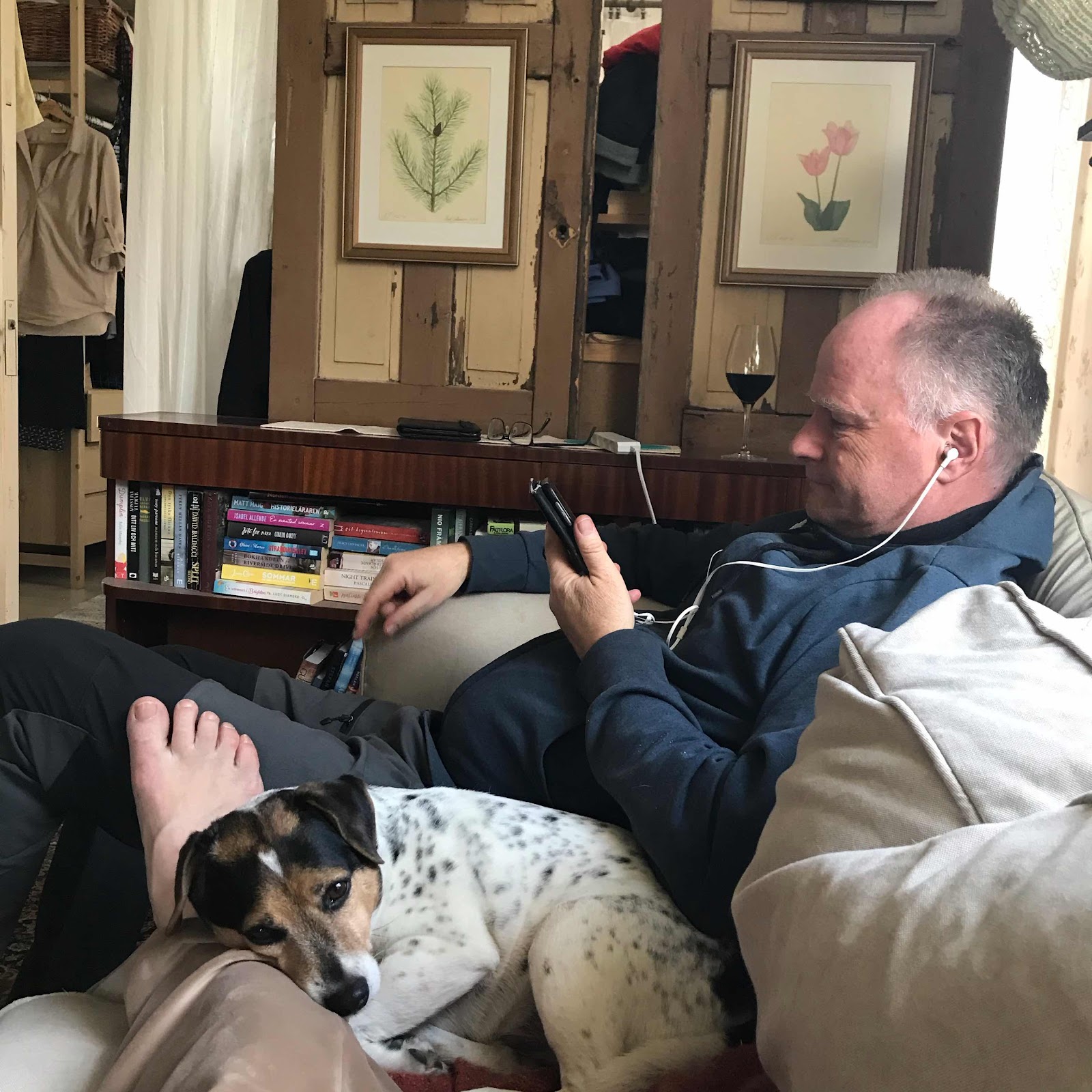 Fredag kväll: Fridhemsfrun kommer på sig med att dricka vin mest för att hålla sig vaken, lägger ner försöken och går och borstar tänderna. Klockan åtta. Sov som en vinterbjörn till klockan sex på morgonen. Var visst lite trött.
