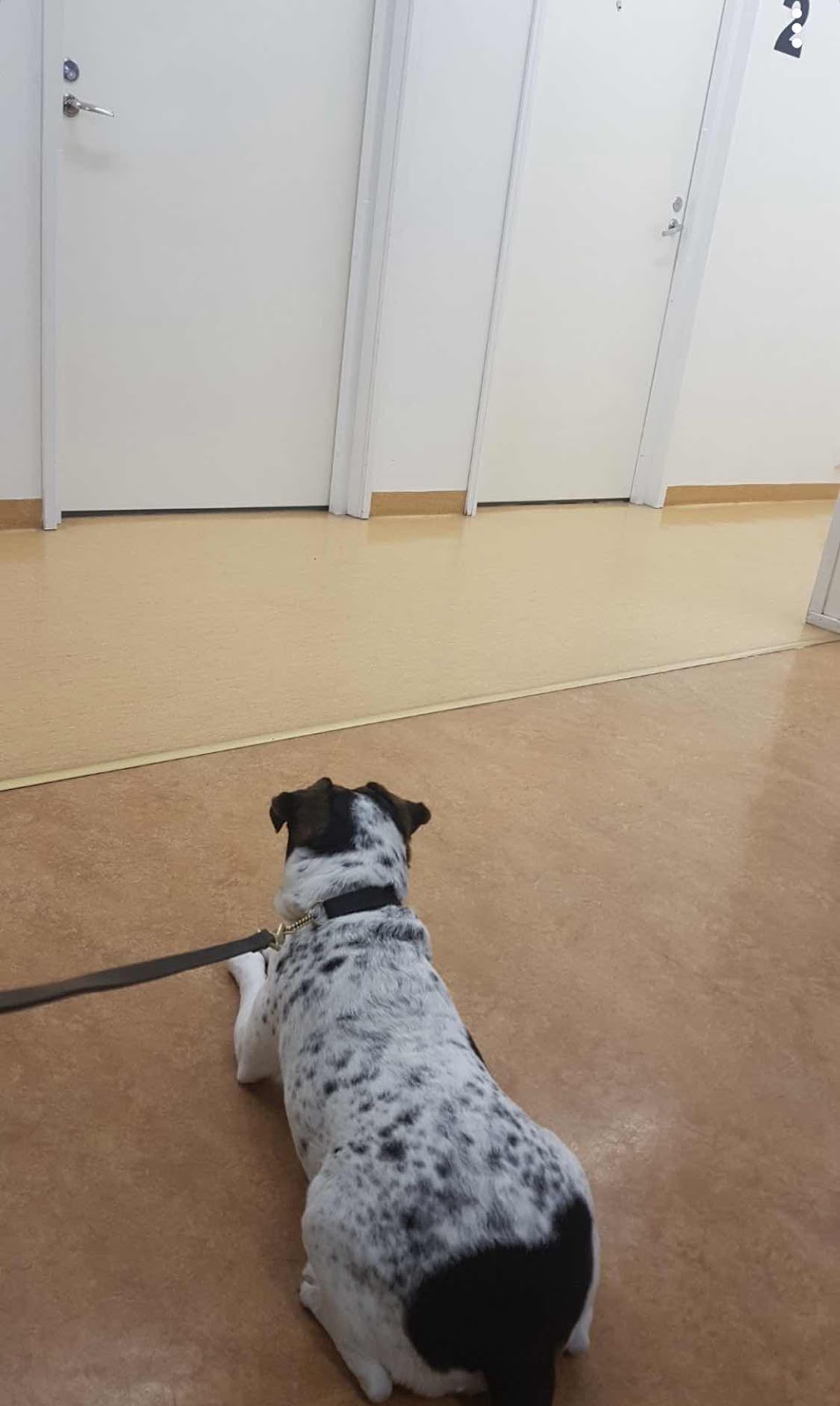 Hussen och Hunden är hos veterinären för att få piller. Piller med skinkpasta på.