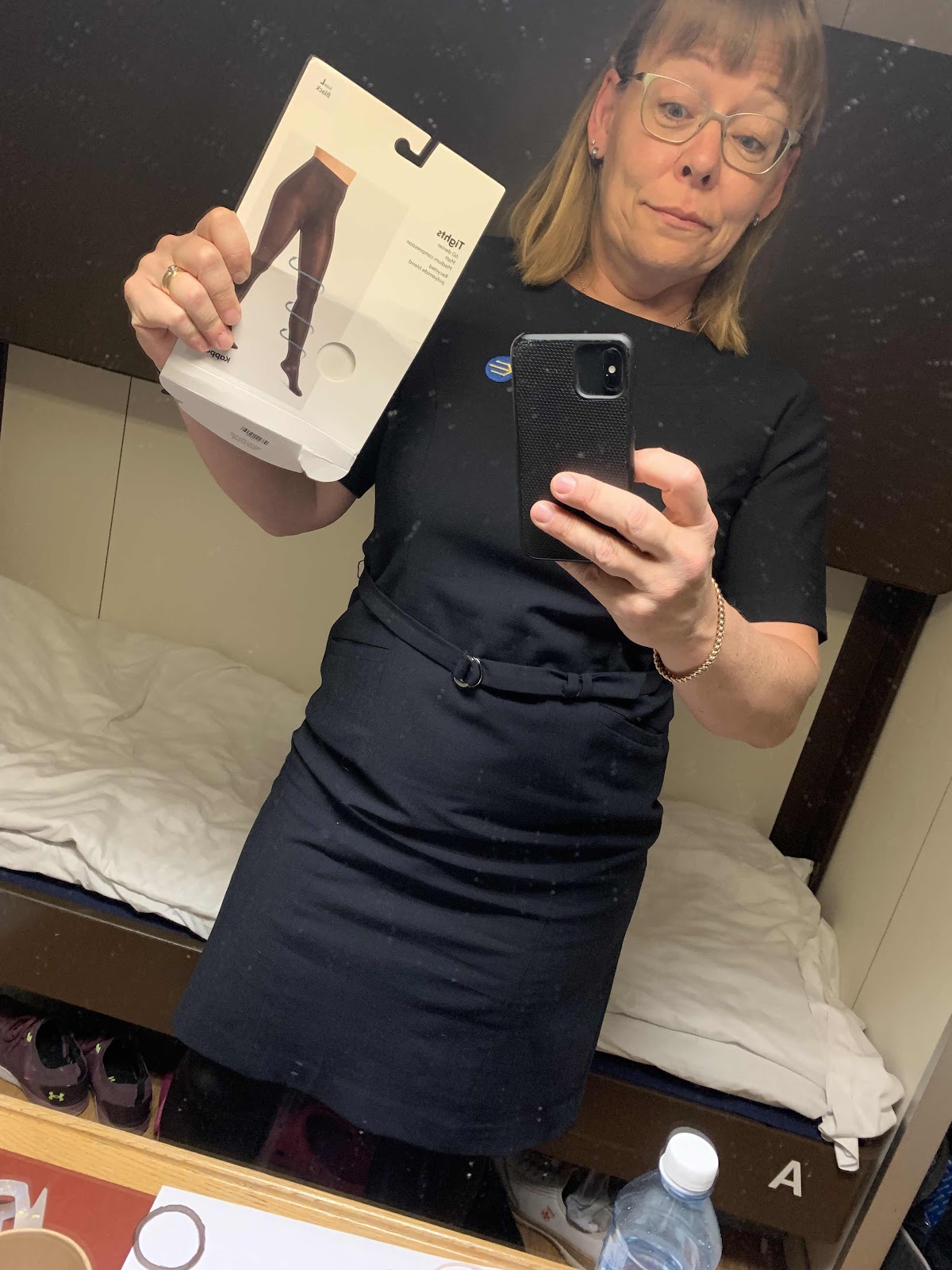 Idag är jag i parfymbutiken och har därmed dragit på mej ett par nyköpta strumpbyxor med stödfunktion.