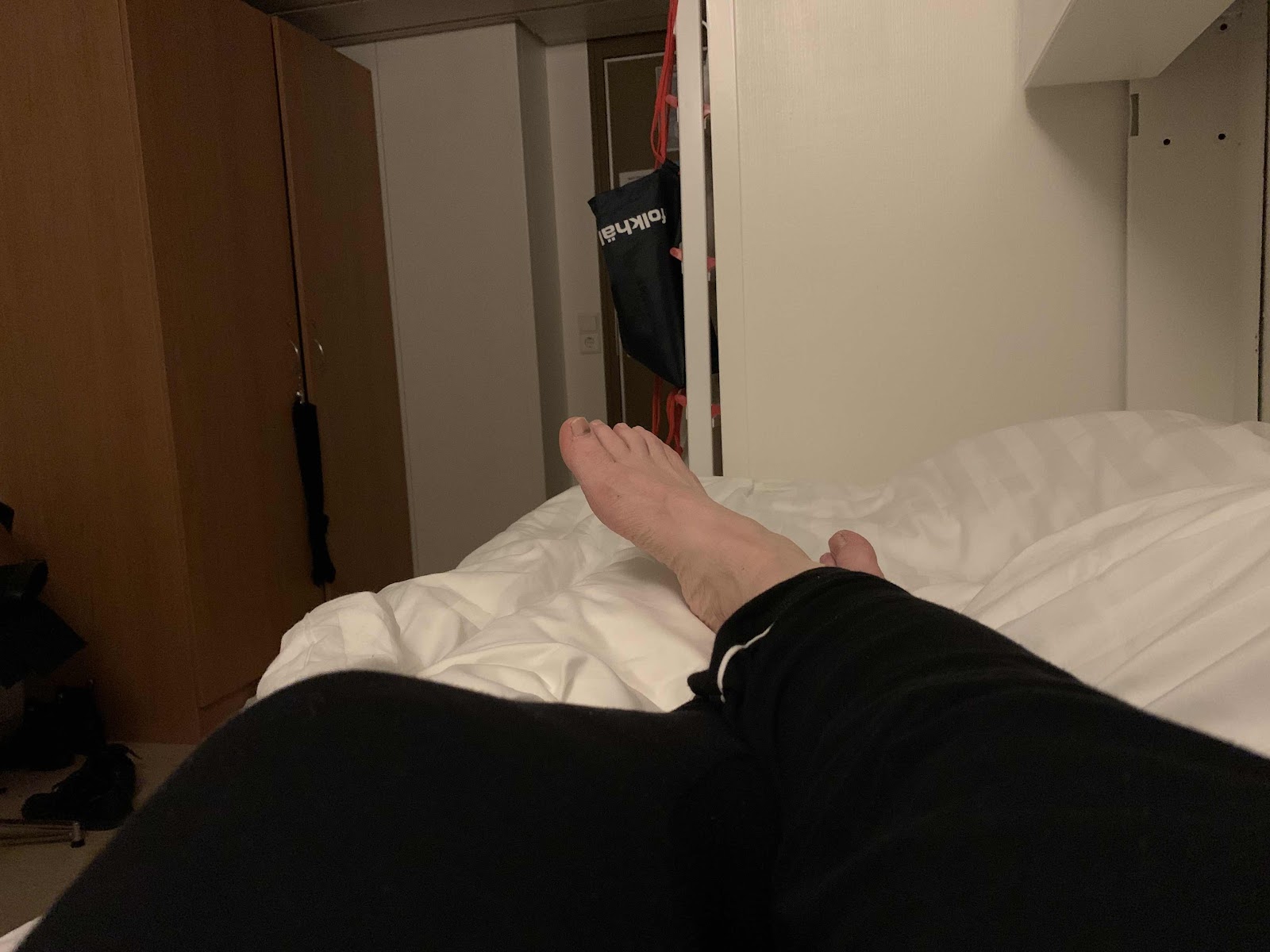 Den här Fridhemsfrun är idag en tröttfotad caféarbetare. Efter två stående/gående tolvtimmarsdaga är det lätt att bli lite tilltufsad. Har tvättat stödstrumporna i handfatet och hängt dem på garderobsdörren. Smörjer fötterna med kräm och humöret med ett glas rödvin. Fast inte ett glas utan en kaffekopp för det var det jag hittade. Gott.