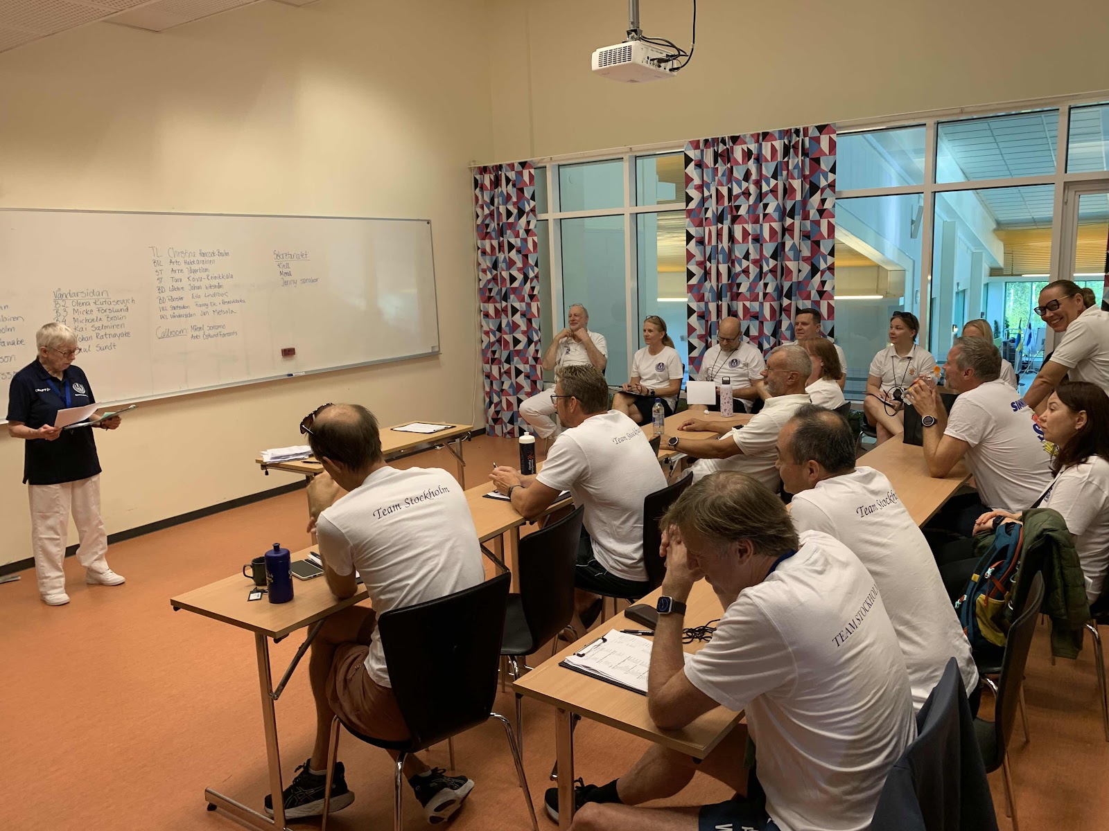 Tänkte jag skulle fota dagen på simtävling så jag började raskt med en bild av funktionärsmötet klockan nio i morse. Sen var klockan plötsligt ett och tävlingen över och jag hade inte tagit fler bilder. Oh well.