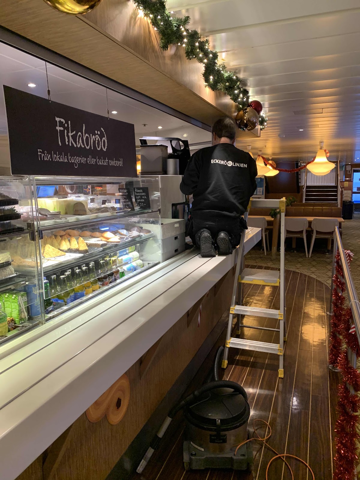 Men när båda kaffemaskinerna i fartygets cafeteria lägger av samtidigt är vi glada att han hinner fixa.