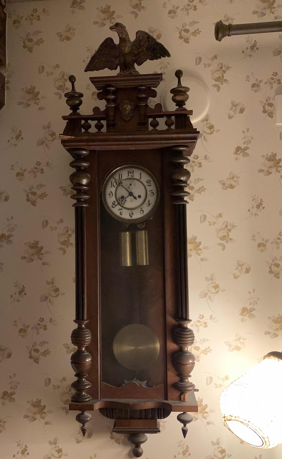 Hämtade upp klockan innan jag åkte till färjan. Den hade blivit smörjad och fixad och tickade så fint igen. Fick veta att den är en Gustav Becker, tillverkad 1909 eller 1910 i Tyskland. På baksidan står årtalet 1946, vilket skulle kunna vara året den köptes till Fridhem.