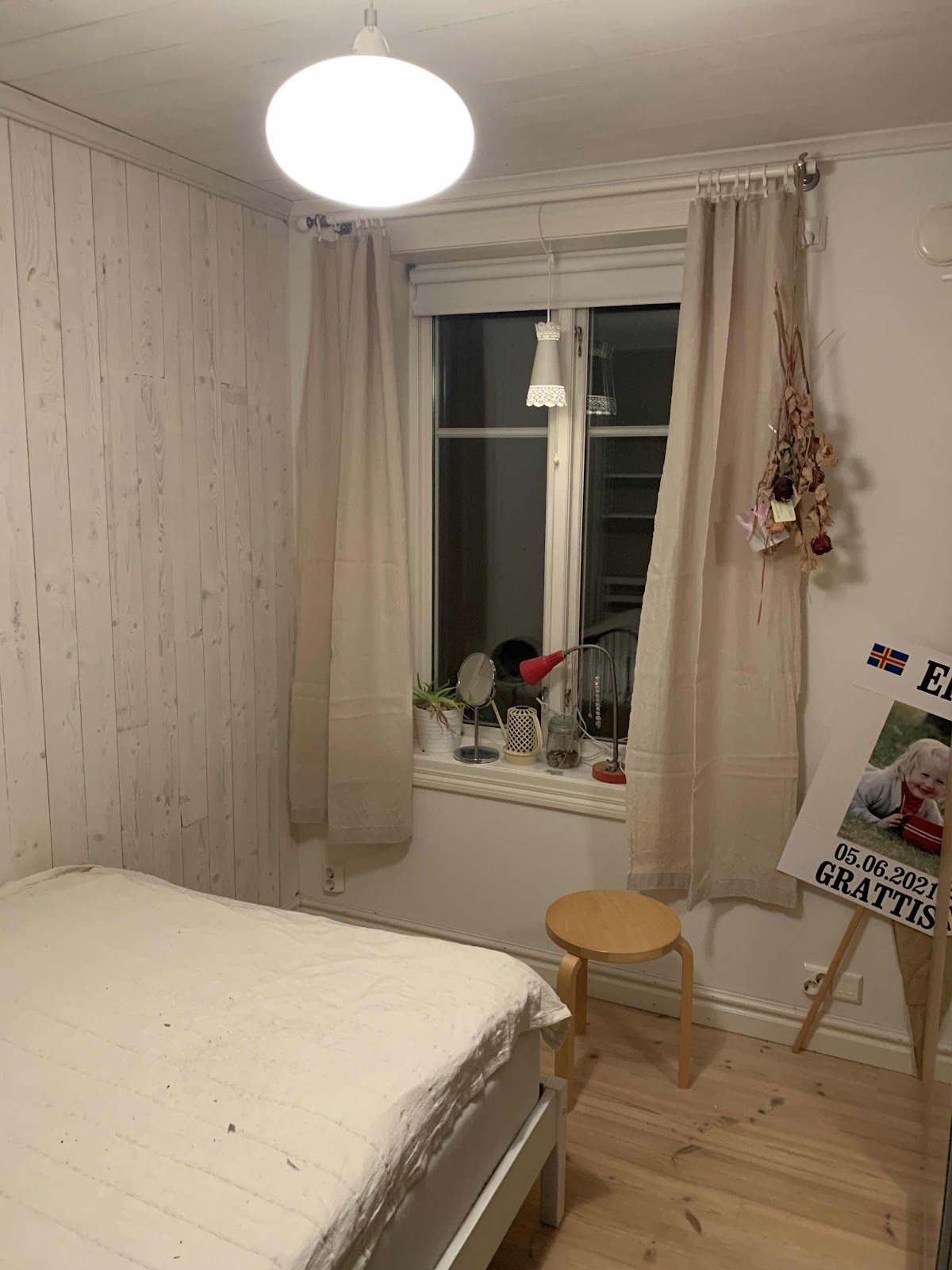 Det blev ju ett supermysigt rum av det här! Om jag bara kunde övertala Studentskan som ska sova här att det är en hög stringhylla hon ska ha vid fotändan så är jag helnöjd.