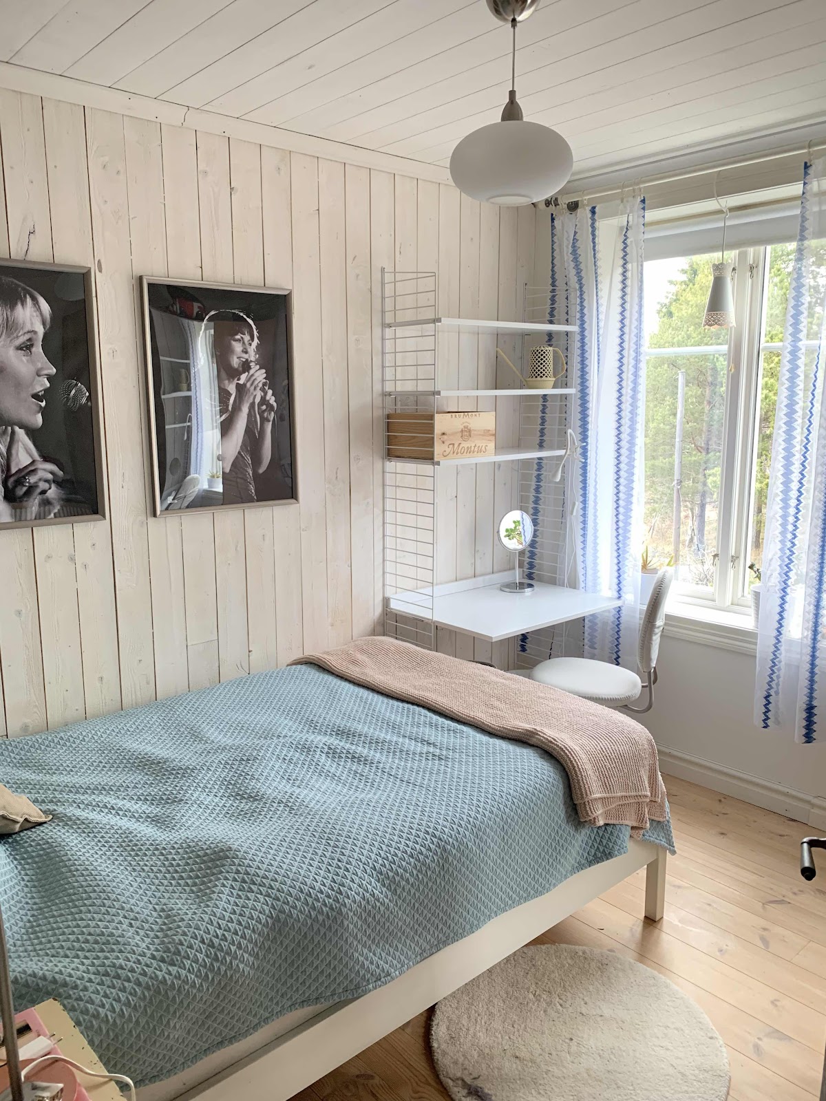 Steg 1: sätta upp den nya stringhyllan i Storasysters rum. Så bra den blev där.