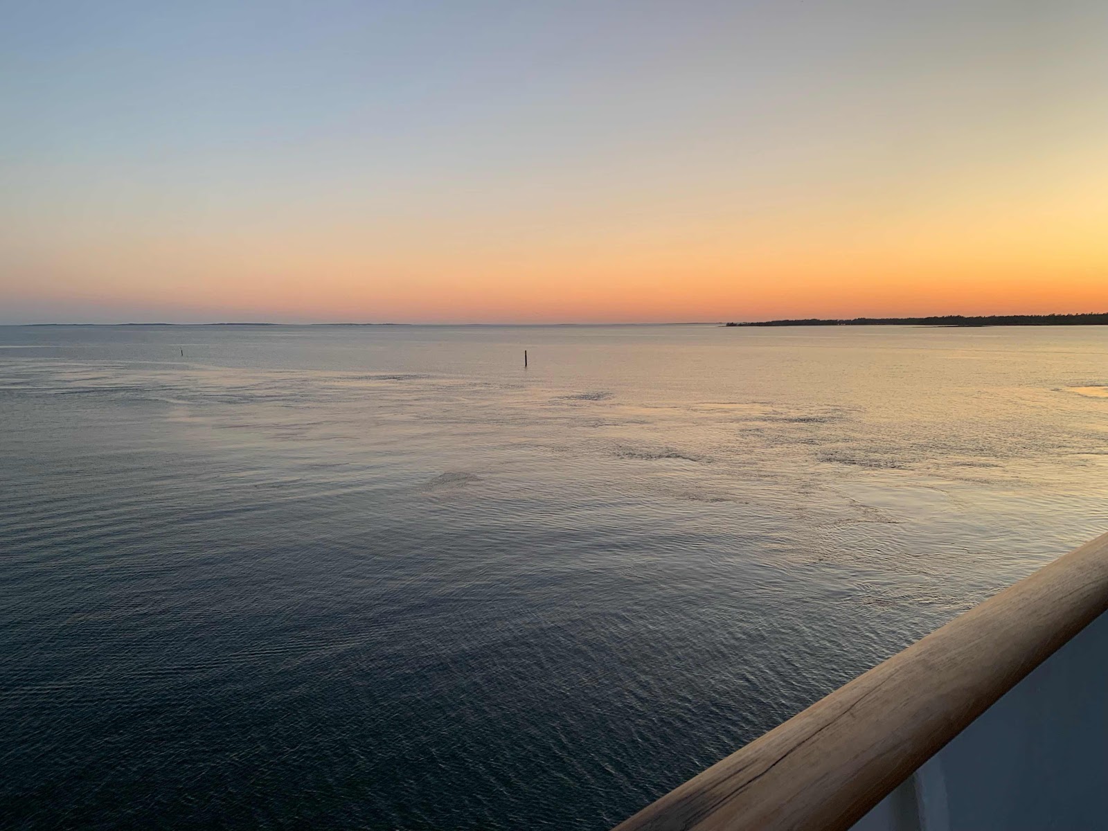 Slutade tidigt och kunde sitta på popdeck med kollegor sista resan. Fint i solnedgången. Bra sjömansliv.