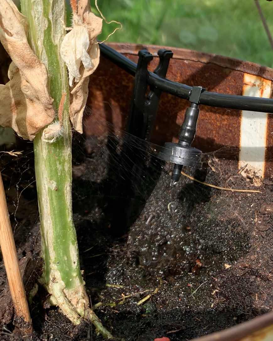 Pillade lite med nyköpt droppbevattning till växthuset och bedömer att den är igång. Hoppas tomaterna blir glada nu då. Och att solen skiner så att pumpen laddas som den ska. Och att vi ändå kommer ihåg att vattna ampeln som inte får nåt dropp.